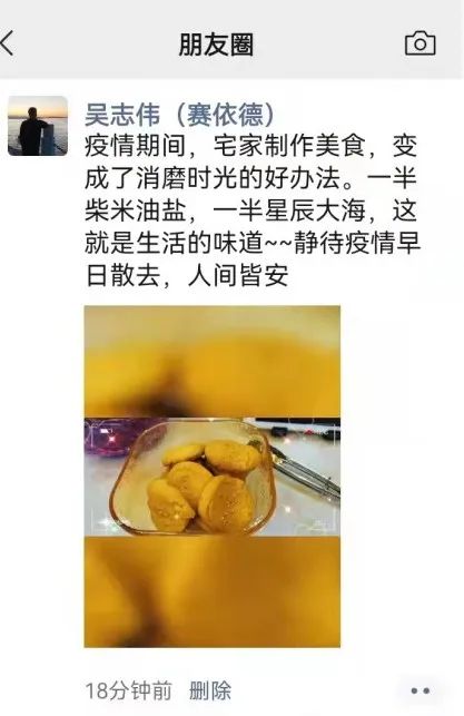吳志偉:疫情期間,宅家與妻子制作美食,增進(jìn)情感,也是消磨時(shí)光的好辦法。