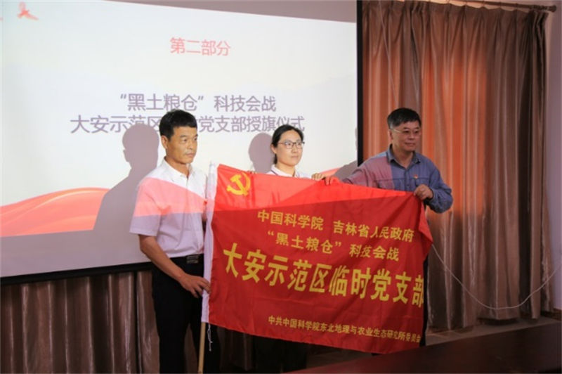 舉行了授旗儀式,蘇陽作動員講話。他指出,開展“黑土會戰”是中國科學院和吉林省人民政府面向國家需求,立足國家糧食安全壓艙石戰略,深入貫徹落實習近平總書記“把黑土地用好養好”的重要指示精神的具體實踐。攻堅克難是我們黨的優良傳統,也是傳家之寶,要讓黨旗在示范區一線高高飄揚。他強調,為充分發揮“黑土會戰”前沿陣地的戰斗堡壘作用,所黨委第一時間在海倫、大安、三江、長春等四個示范區成立了臨時黨支部,實現的黨的組織和黨的工作全覆蓋,這是在科技會戰中全面加強黨的領導的重要內容。希望大家“不忘初心、牢記使命”,腳踏實地,在急難險重任務中沖鋒在前,以銳意進取的姿態,投入到創新科技、服務國家、造福人民的偉大斗爭中去,傳承興土精神,為用好養好黑土地做出國家戰略科技力量應有的貢獻,不辱使命!