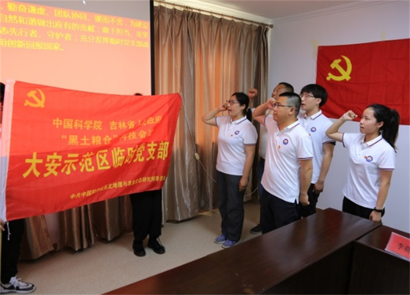 馬七軍做總結講話。他強調,建立示范區臨時黨支部是推進“黑土會戰”的實際需要,也是強化組織、凝聚力量,砥礪基層戰斗堡壘的必要舉措。今天的授旗儀式,既是號召廣大黨員干部積極投身“黑土會戰”的集結令,也是讓黨旗高高飄揚在科技會戰主戰場的沖鋒號。希望示范區臨時黨支部充分發揮好戰斗堡壘作用,真正將黨的政治優勢轉化為堅決打贏“黑土會戰”的組織優勢;希望廣大黨員干部能在“黑土會戰”中做到沖鋒在前,吃苦在前,擔當在前,真正做到手中有黨旗,心中有信仰,工作有方向,切實將黨的引領作用貫穿“黑土會戰”工作始終;希望長期扎根示范區一線的廣大科技工作者們,能深入學習老一輩科學家的治學精神,繼續追隨劉興土院士的足跡,心系“國家事”、肩扛“國家責”,在推動科技自立自強的事業中揮灑汗水,以昂揚的斗志、飽滿的精神投身“黑土會戰”各項任務中,以優異的成績迎接黨的二十大勝利召開!