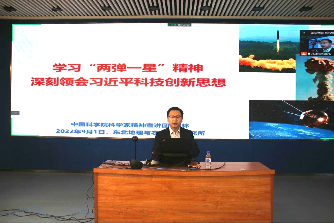 王曉慧在動員講話中指出,9月是本所“弘揚科學家精神,喜迎黨的二十大”主題活動月,本次弘揚科學家精神專題報告會暨本所主題活動月的啟動大會,標志著主題活動月正式開啟。她強調,組織開展“弘揚科學家精神,喜迎黨的二十大”系列活動是深入實施“傳承老科學家精神 弘揚新時代科學家精神在行動”專項工作的具體舉措,旨在推動全所職工、研究生踐行科學家精神、建功立業新時代,以良好精神面貌和優異科研成績迎接黨的二十大勝利召開。她依據《東北地理所“弘揚科學家精神,喜迎黨的二十大”活動月工作方案》部署推進重點工作,并提出具體要求。她強調,各黨支部(黨總支)要結合本所使命定位和發展歷史,深入挖掘一代代科學家攻堅克難、科技創新、奮斗圓夢的科學探索故事和科學家精神內涵,多措并舉開展系列“弘揚科學家精神”主題活動,提振科技人員精氣神,鼓舞和激勵廣大科研工作者主動對標職責使命,賡續創新奮斗的精神血脈,不斷強化勇攀科學高峰、勇擔時代使命,爭做高水平科技自立自強排頭兵的責任意識和使命意識,以新成績續寫新時代科學家精神的精彩華章。