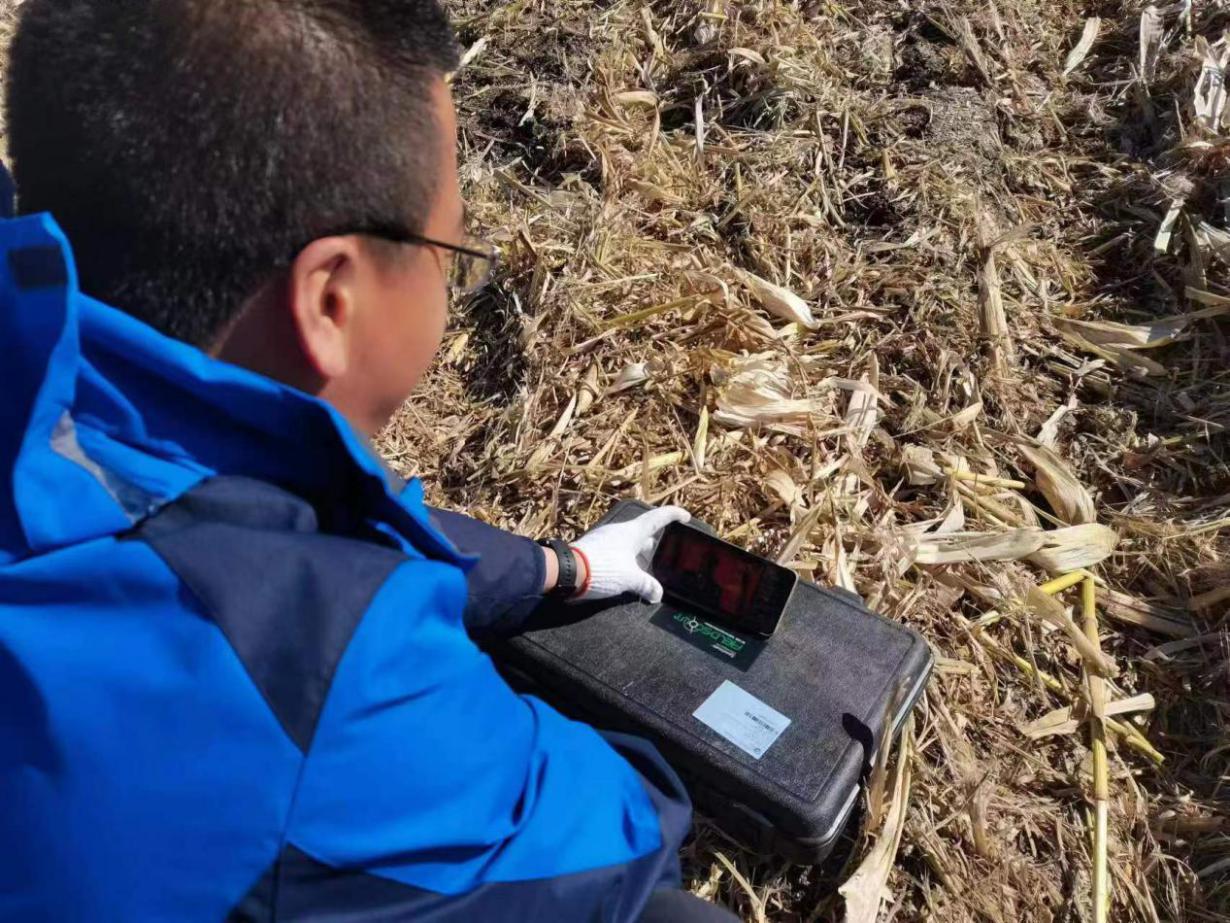 “黑土會戰”長春示范區陳學文副研究員在野外工作同時觀看二十大直播