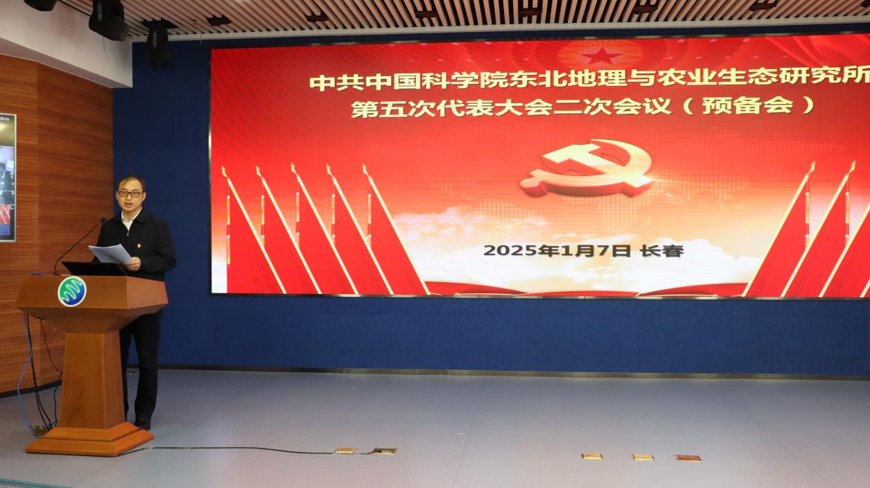 2025年1月7日,中共中國科學院東北地理與農業生態研究所第五次代表大會二次會議在綜合樓六樓報告廳召開。全所93名黨員代表參加會議,會議由黨委書記、副所長王宗明主持。