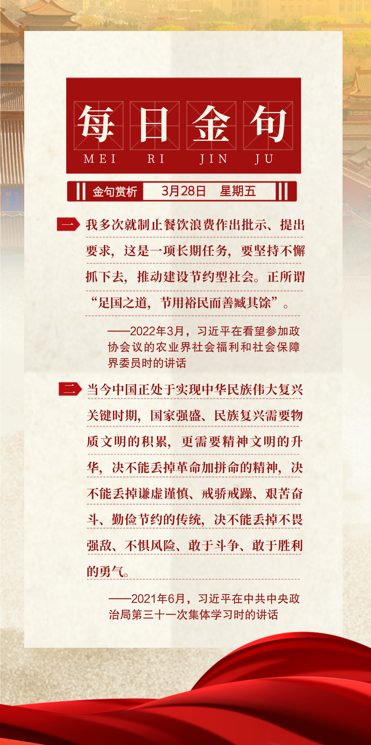 【“艱苦奮斗、勤儉節約,帶頭過緊日子”宣傳周】——習近平總書記關于厲行節約、反對浪費和過緊日子的重要講話和指示批示(五)