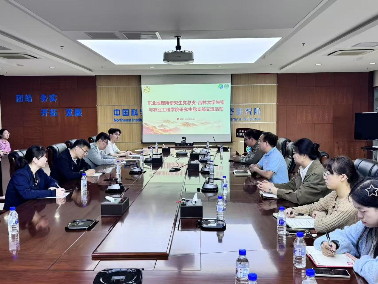 苑春宇首先對楊民一行表示熱烈歡迎,并介紹了東北地理所的歷史沿革、發(fā)展成果、教育工作與學生支部建設等情況,分享了黨團班一體化建設和支部管理的相關經驗,并回顧了雙方良好的合作經歷。楊民對吉林大學生物與農業(yè)工程學院的歷史沿革、發(fā)展成果、專業(yè)設置等情況做了介紹。