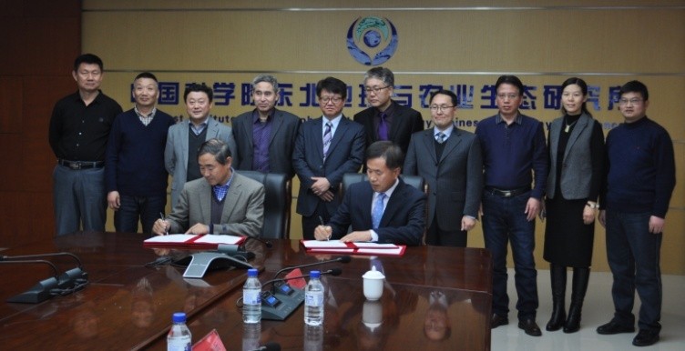 簽約儀式上,韓國水資源研究院Sanguk Lee研究員和東北地理所姜明研究員,首先分別介紹了雙方單位的科研領域、研究平臺和人才建設等情況。何興元所長和Youngwoo所長分別對中韓兩國的水資源研究現狀和共同面臨的科學問題與現實挑戰深入交換了意見。何所長結合全球變化下東北亞區域水文水資源變化、東北地理所“十三五戰略規劃”和“一三五”研究重點,深入闡述了新時期構建東北亞國際合作研究平臺的必要性和重要性,并對未來相關合作領域進行了探討。雙方在互派學者交流、共同承辦區域性水資源國際會議和項目合作研究等方面,達成了初步共識。何興元所長和Kim Youngwoo所長代表雙方單位簽訂了合作備忘錄。