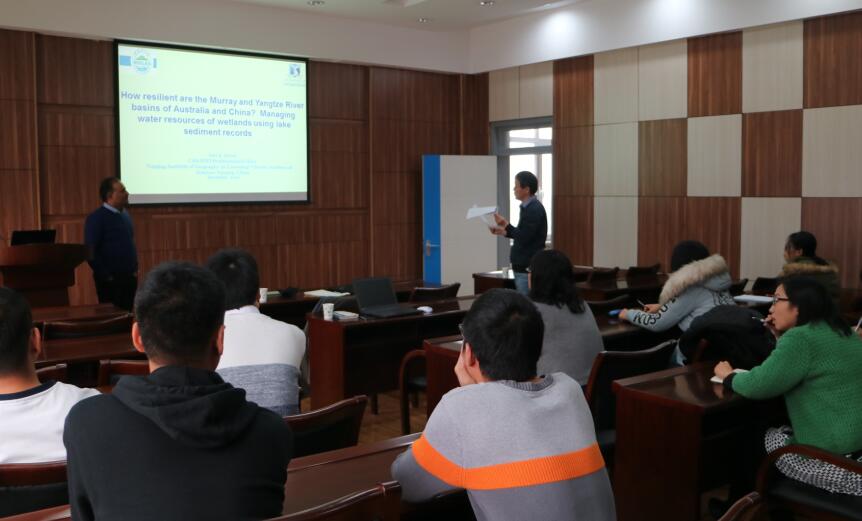 應(yīng)濕地演化與生態(tài)功能學(xué)科組組長(zhǎng)王國(guó)平研究員的邀請(qǐng),澳大利亞墨爾本大學(xué)水資源管理組高級(jí)研究員Giri Kattel于12月11-13日來東北地理所進(jìn)行學(xué)術(shù)交流訪問,并做了題為“How resilient are the Murray and Yangtze River basins of Australia and China? Managing water resources of wetlands using lake sediment records”的學(xué)術(shù)報(bào)告。