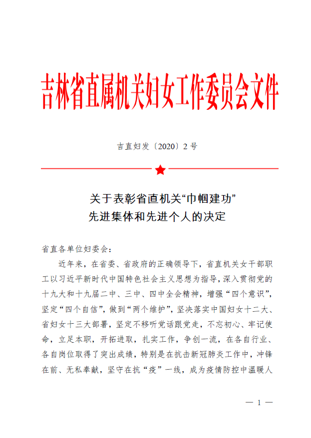 【中國(guó)科學(xué)院長(zhǎng)春分院】中科院長(zhǎng)春分院系統(tǒng)兩個(gè)集體榮獲吉林省直機(jī)關(guān)“巾幗建功”先進(jìn)集體