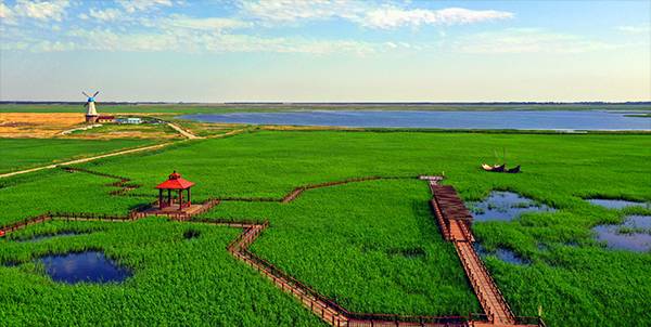 濕地公園里,蘆葦成片,一望無際,整個(gè)濕地公園基本處于原生狀態(tài),“春來葦葉綠,秋到蘆花黃”的蘆葦濕地美景也是北方少見的。