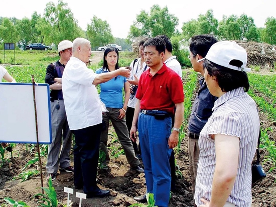 中科院東北地理所研究員與趙其國(guó)院士討論黑土地變硬的問(wèn)題。圖/韓曉增