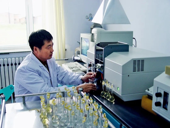 韓曉增在實(shí)驗(yàn)室測(cè)試黑土地土壤微量營(yíng)養(yǎng)元素。圖/韓曉增