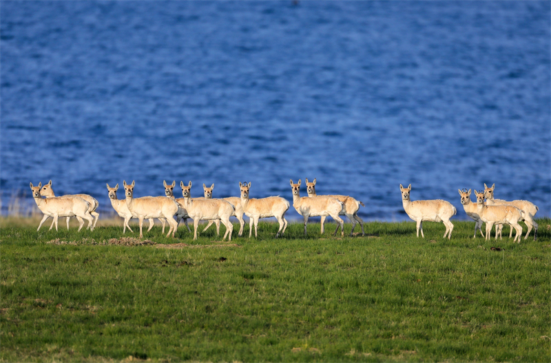 青海湖鳥(niǎo)島國(guó)際重要濕地湖濱的普氏原羚。國(guó)家林草局供圖