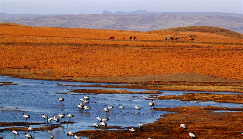 拍攝到的鶴群(云南大山包國(guó)際重要濕地)。國(guó)家林草局供圖