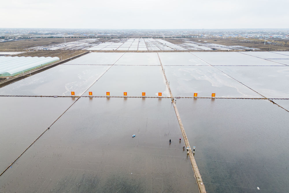 在黑龍江省慶安縣國家現代農業產業園,農民在清理稻田(無人機照片,4月26日攝)。新華社記者 張濤 攝