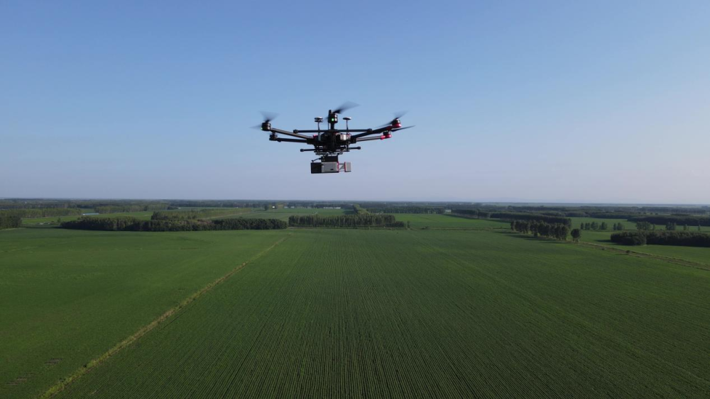 搭載激光雷達的無人機正在進行農業科技作業。(受訪者供圖)