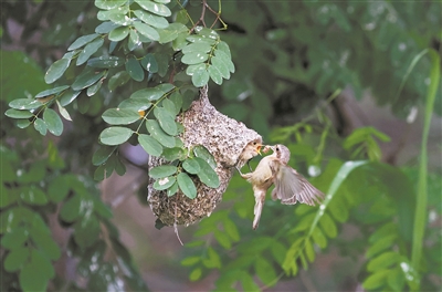 中華攀雀在河北省唐山市豐南區(qū)沿海濕地育雛。新華社記者 楊世堯攝