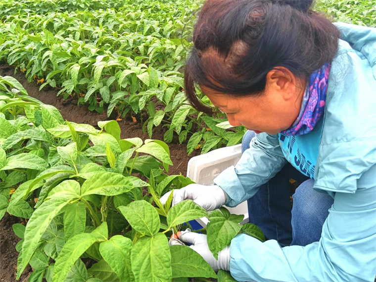 李艷華在野外實驗田做大豆雜交實驗(央廣網見習記者陳顯春 攝)
