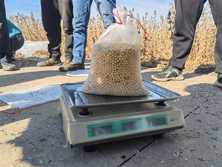 新華社哈爾濱9月29日電(記者黃騰)眼下,在我國產(chǎn)糧大省黑龍江,秋收工作正如火如荼展開。9月28日,在位于黑龍江省海倫市的中國科學(xué)院東北地理與農(nóng)業(yè)生態(tài)研究所海倫農(nóng)業(yè)生態(tài)實驗站,6.6畝大豆新品系“東生1042”連片高產(chǎn)示范田里,一場大豆測產(chǎn)正在進(jìn)行。隨著開始作業(yè)的指令發(fā)出,工作人員揮舞著鐮刀向前行進(jìn)。不一會兒,收獲完畢,測產(chǎn)結(jié)果宣布,這片示范田理論畝產(chǎn)為331.2公斤,合公頃產(chǎn)量近萬斤。