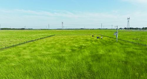 鹽堿化草地羊草植被高效恢復(fù)示范基地。項(xiàng)目組供圖