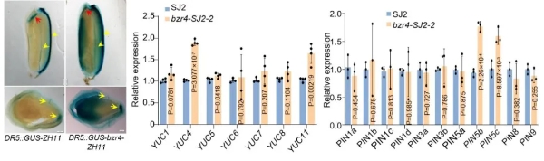 進一步研究發(fā)現(xiàn),OsBZR4作為一種轉(zhuǎn)錄抑制因子,通過同時抑制生長素合成基因與運輸基因表達,來維持胚發(fā)育所需的生長素穩(wěn)態(tài)。