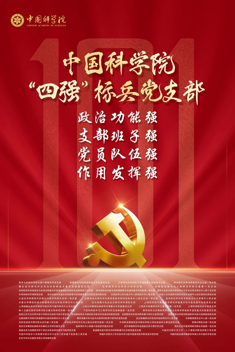 為加強基層黨組織建設(shè),充分發(fā)揮基層黨組織的戰(zhàn)斗堡壘作用和黨員的先鋒模范作用,6月30日上午,在中國科學(xué)院慶祝建黨101周年表彰交流會上,院黨的建設(shè)工作領(lǐng)導(dǎo)小組授予50個黨支部中國科學(xué)院“四強”標兵黨支部稱號。本所環(huán)境黨支部榮獲此稱號。