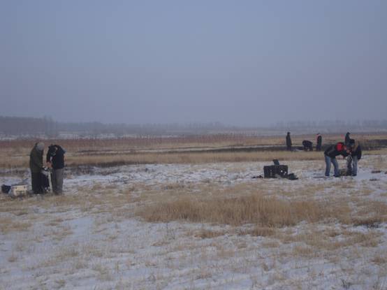 在實驗過程中,各個單位的科研人員組成了精干的團(tuán)隊,發(fā)揚(yáng)了團(tuán)結(jié)、高效、吃苦、敬業(yè)的精神,實現(xiàn)了數(shù)據(jù)共享、設(shè)備共享,在零下29度的嚴(yán)冬里,順利完成了本次實驗。通過細(xì)致、準(zhǔn)確的觀測,對解決目前在積雪遙感研究中的關(guān)鍵科學(xué)問題,提供了數(shù)據(jù)支持?! ?/P>