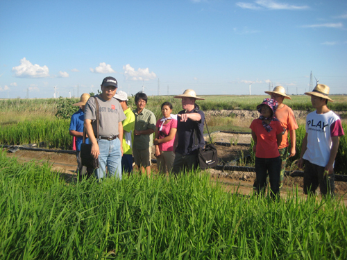 8月16日,Grattan教授前往大安堿地生態(tài)試驗站進行野外考察。王志春研究員等大安站科研人員及研究生分別向Grattan教授詳細介紹了大安站田間試驗和監(jiān)測工作。Grattan教授就鹽堿地種稻,施肥定位試驗,排水試驗,耕作改良試驗及地下水、土壤和氣象監(jiān)測等,與大家進行了充分的交流和研討,并對鹽堿地農(nóng)業(yè)灌排水管理、耐鹽堿作物種植等方面提出寶貴意見。實地考察后,由梁正偉研究員主持,Grattan教授在大安站作了題為“Management of saline-sodic drainage water for irrigation: opportunities and challenges”的學術(shù)報告,重點介紹了美國加利福尼亞州土地利用和農(nóng)業(yè)發(fā)展情況,鹽漬土改良與節(jié)水研究,灌溉排水管理和再利用,灌溉水質(zhì)與土壤理化性質(zhì)等,并認為鹽堿土改良及農(nóng)業(yè)利用是一項重大課題。Grattan教授表示非常愿意在相關(guān)領(lǐng)域開展合作研究。