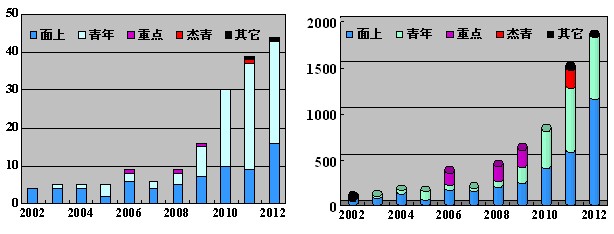 近日,國家自然科學基金委公布了2012年集中受理期間申報項目的評審結果。我所獲批的基金項目共有44項(其中面上項目16項、青年基金項目27項、期刊專項基金項目1項),獲批資助經費1847萬元。同去年相比,資助項目數量增加12.8%,資助經費增加24%。