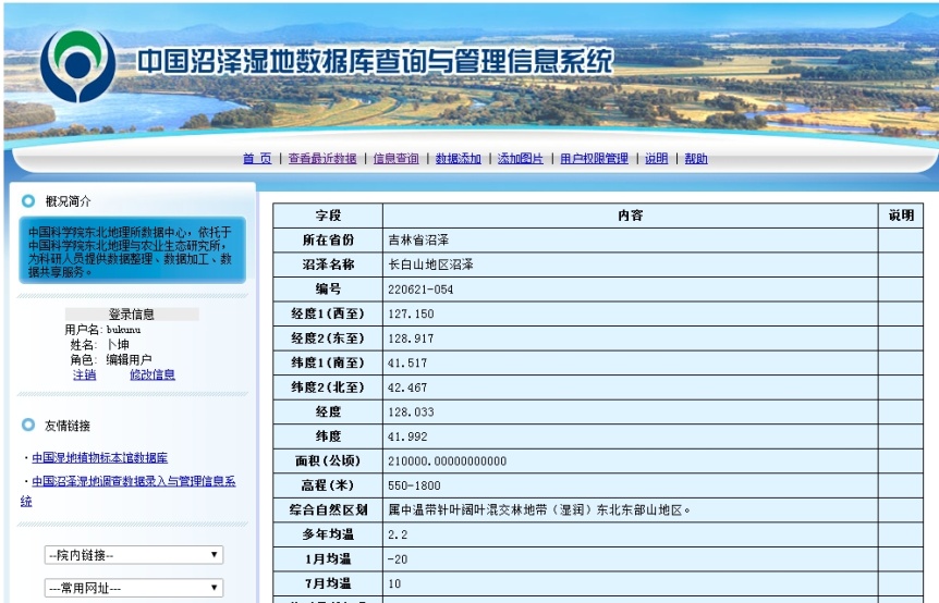 項目建立的沼澤濕地數據管理信息平臺