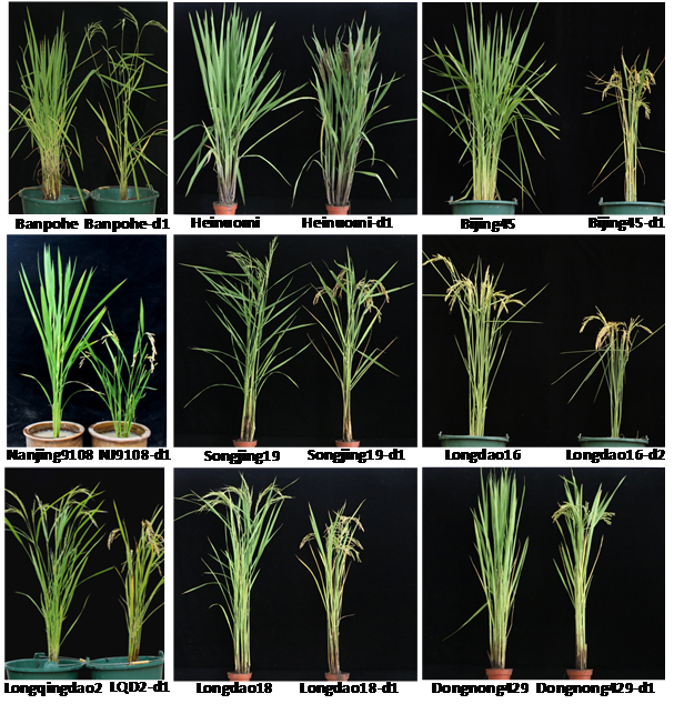 我所水稻分子育種學(xué)科組利用CRISPR/Cas9基因編輯技術(shù)對(duì)7個(gè)黑龍江省主栽?xún)?yōu)質(zhì)品種、3個(gè)南方優(yōu)質(zhì)品種抽穗期基因Hd2、Hd4、Hd5進(jìn)行了基因編輯,成功培育出早熟穩(wěn)定水稻品系(圖1)。這一研究不僅可以促進(jìn)黑龍江省主栽品種北移、擴(kuò)大種植面積,也有助于引進(jìn)南方優(yōu)質(zhì)水稻資源。與傳統(tǒng)的育種方式相比,這一技術(shù)具有高效、穩(wěn)定、快速等優(yōu)勢(shì),將會(huì)更廣泛應(yīng)用于育種中。