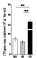 東北地理所土壤物質循環學科組科研人員以大豆-玉米-小麥輪作(RS),大豆短期連作(小麥-大豆-大豆)(SS)和大豆長期連作(CS)的大豆根圍土壤為研究對象,采用qPCR及高通量測序(MiSeq)技術,探索長期連作對大豆田土壤真菌豐度、群落結構和一些功能菌群的影響。結果表明:大豆長期連作土壤真菌豐度顯著高于大豆輪作和大豆短期連作(圖1)。大豆輪作和短期連作土壤中真菌優勢菌門是Ascomycota、Basidiomycota和Zygomycota,但長期連作土壤中Basidiomycota不再是優勢菌門(圖2)。主坐標分析(PCoA)顯示,連作對土壤真菌群落組成和結構影響顯著,長期連作和短期連作對土壤真菌群落影響也不同(圖3)。Lefse分析表明潛在的致病菌(Alternaria和Boeremia)在大豆短期連作中起主要作用,潛在的有益菌(Clonostachys、Metacordyceps和Metarhizium)在大豆長期連作中起主要作用(圖4)。進一步分析發現大豆連作后分別有10個潛在的致病菌和有益菌相對豐度發生顯著變化,大豆連作后致病菌相對豐度增加的同時有益菌相對豐度也在顯著增加(圖5)。