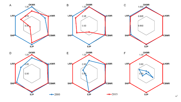 東北地理所地理景觀遙感和城市森林與濕地團(tuán)隊(duì)的研究人員利用Landsat系列衛(wèi)星遙感影像解譯獲取的2000和2015年土地覆蓋數(shù)據(jù),探討了國(guó)家實(shí)施一系列生態(tài)工程以來(lái)東北地區(qū)的土地覆蓋變化特征,進(jìn)而利用InVEST模型分析了東北地區(qū)生態(tài)系統(tǒng)服務(wù)的時(shí)空格局及其地理空間異質(zhì)性,深入討論了不同政策影響下的東北地區(qū)土地覆蓋變化特征,及其對(duì)生態(tài)系統(tǒng)服務(wù)變化的影響。