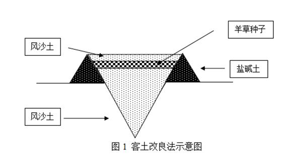 沙地土壤具有含鹽量低、結(jié)構(gòu)疏松的性狀,沙地土壤與鹽堿土壤混合,能有效降低鹽堿土的鹽堿含量,限制下層鹽堿土的鹽分向上移動,實(shí)現(xiàn)上面覆沙層發(fā)展為適合植物生長的土壤層,在雨水的作用下,鹽分從表層土淋溶到深層土中。雖然通過表面覆沙恢復(fù)鹽堿化草地植被取得了顯著成果,但是表面覆沙用于種草成本太高,10cm厚度的覆沙厚度就意味著需要1000m3/ha風(fēng)沙土,這嚴(yán)重阻礙了該技術(shù)在草地的應(yīng)用與推廣。