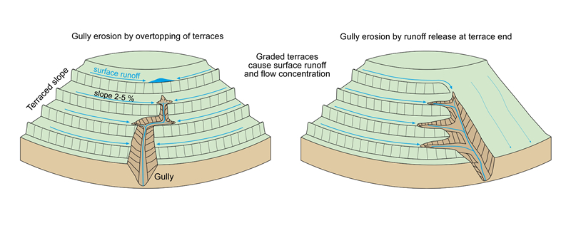 圖1 傾斜梯田匯集地表徑流導(dǎo)致切溝發(fā)育