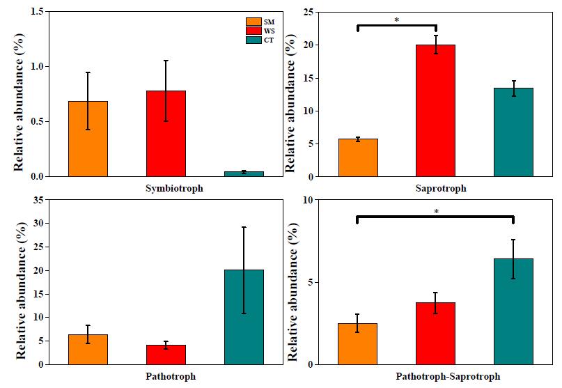 圖3 蟹洞不同部位沉積物真菌功能預測結果