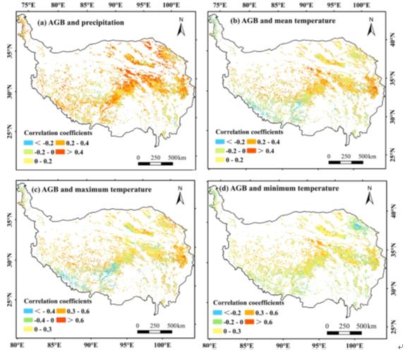 圖2青藏高原沼澤濕地植被地上生物量與氣候因子相互關系