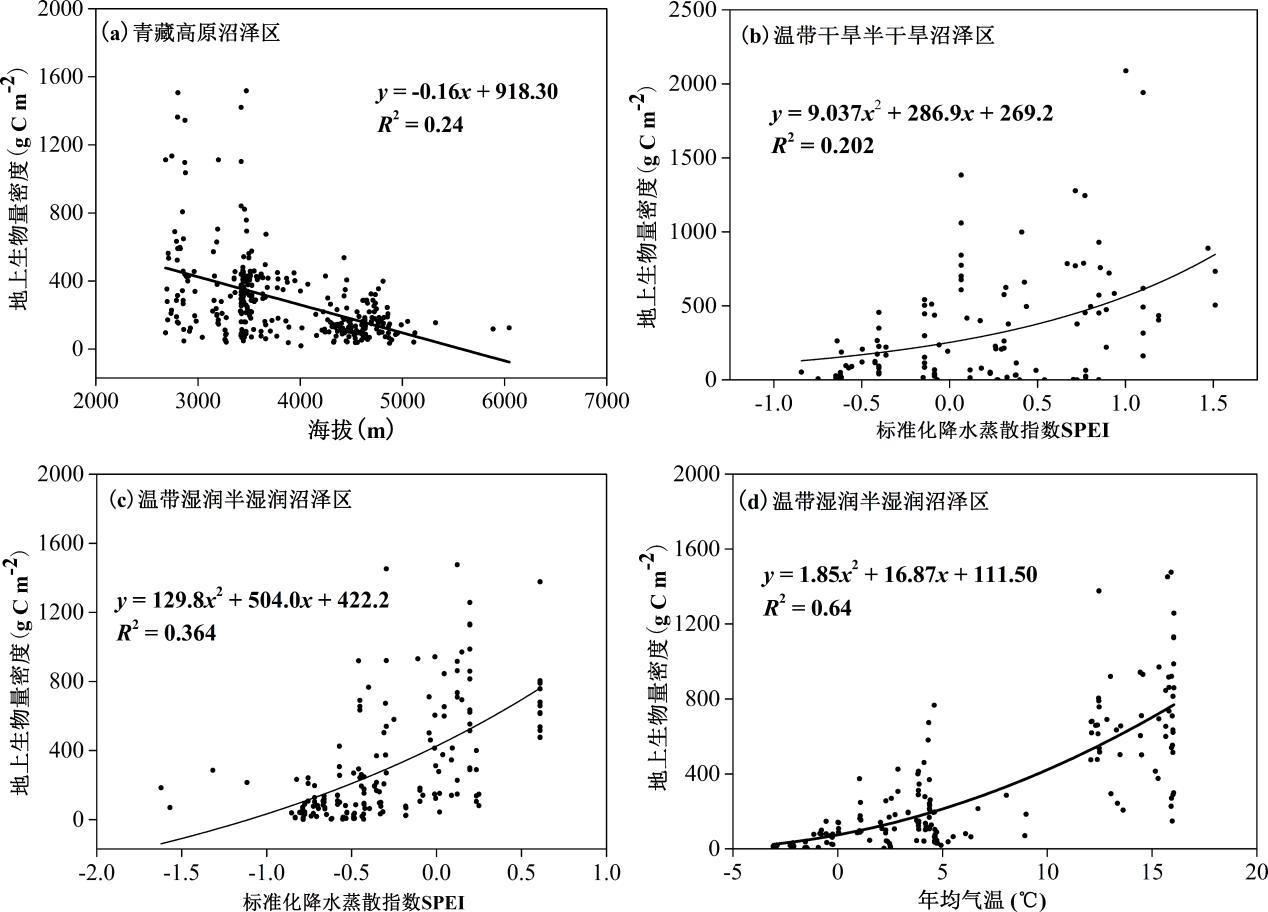 圖3中國草本沼澤植被地上生物量與環境因素的關系