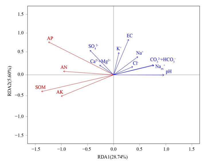 圖3 蘇打鹽堿土鹽分含量與養分含量的關系