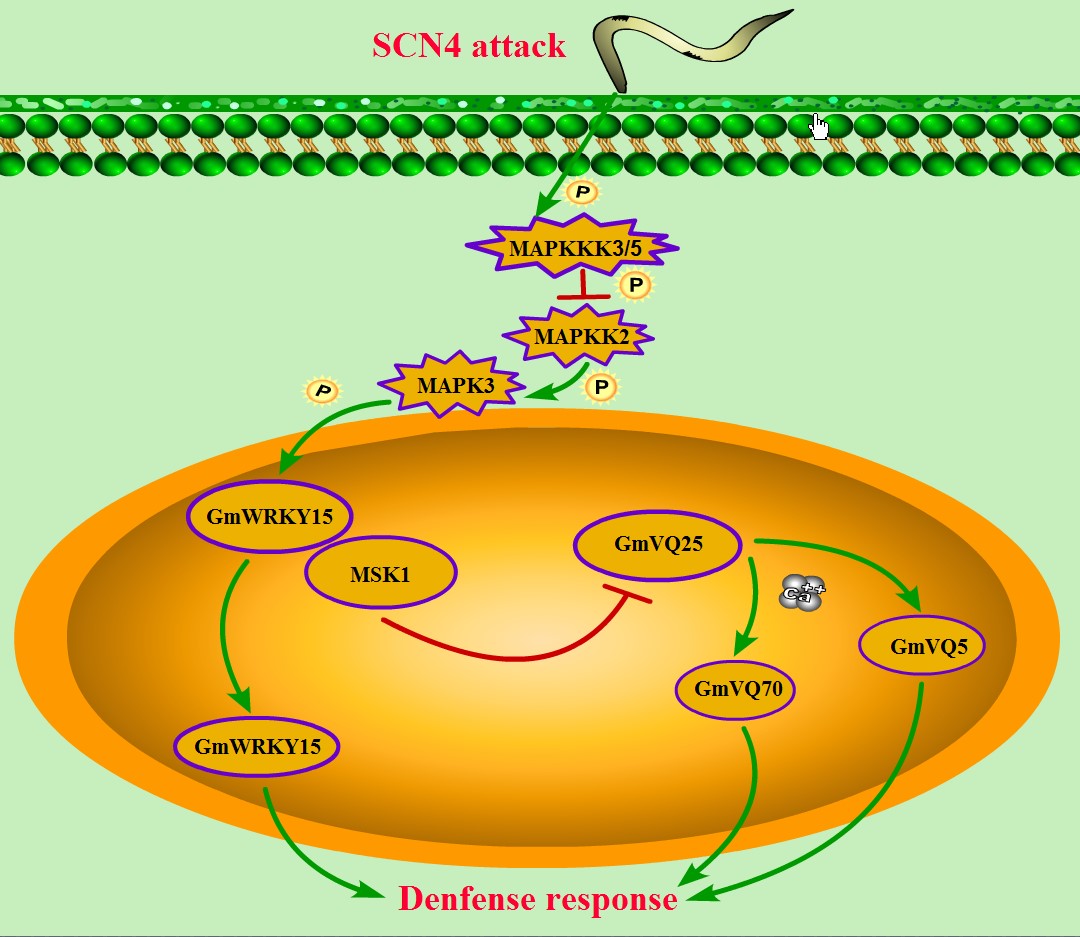 圖3 大豆孢囊線蟲侵染大豆不親和反應激起MAPK-WRKY-VQ互作防御反應