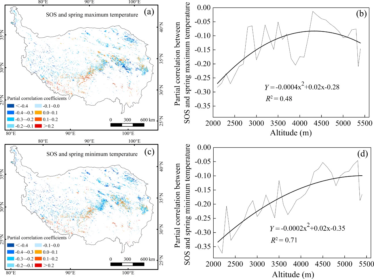 圖2青藏高原沼澤植被春季物候與氣溫相關(guān)性及其隨海拔高度的變化