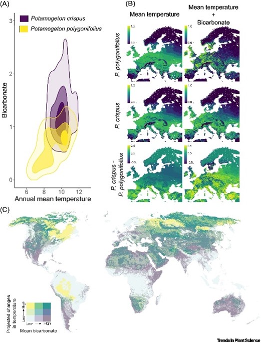 (3)通過對兩種常見眼子菜屬植物的生態(tài)位模擬研究發(fā)現(xiàn),未來氣候變化所導(dǎo)致的溫度和水體碳酸氫根濃度變化,對菹草和蓼葉眼子菜的環(huán)境適合度及其分布格局具有非對稱影響,這充分表明全球變化對于水生植物乃至水生生態(tài)系統(tǒng)影響的復(fù)雜性。