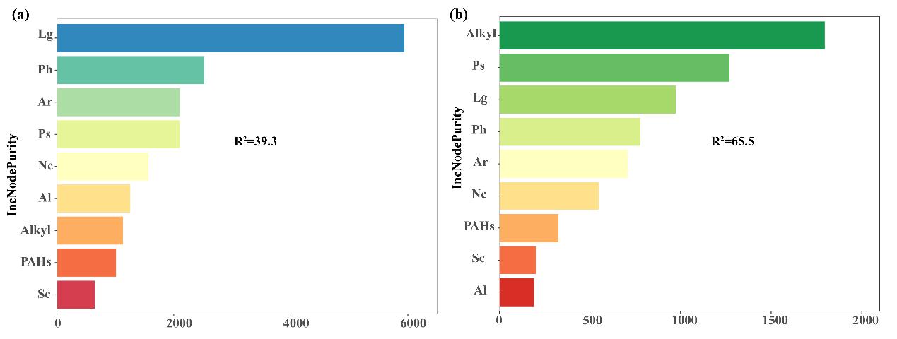 用隨機(jī)森林分析熱解產(chǎn)物對(duì)表土和底土中 SOC 穩(wěn)定性的相對(duì)影響