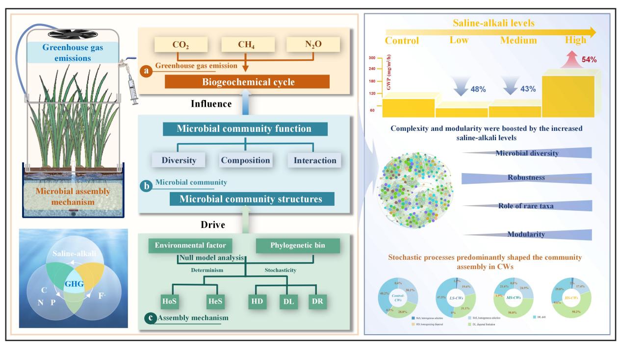 東北地理所在鹽堿和氟脅迫下人工濕地碳氮排放及微生物機制方面取得進展
