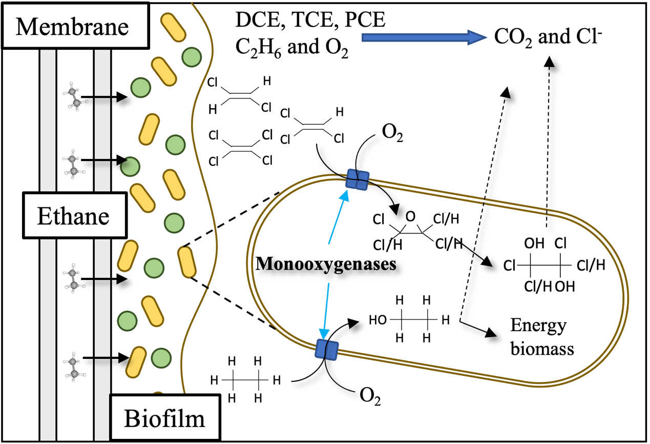 Chi,Z.,Liu,X.,Li,H.,Liang,S.,Luo,Y. H.,Zhou,C.,& Rittmann,B. E. (2023). Co-metabolic biodegradation of chlorinated ethene in an oxygen-and ethane-based membrane biofilm reactor. Science of the Total Environment,905,167323. https://doi.org/10.1016/j.scitotenv.2023.167323