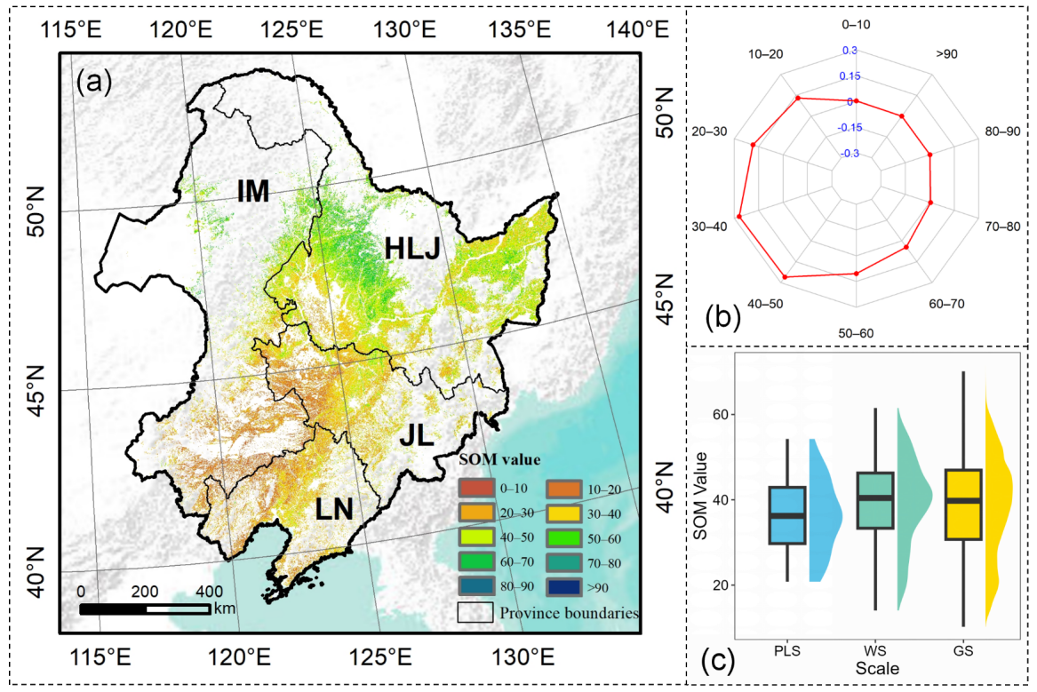耕地土壤有機質(zhì)(SOM)在維持土壤健康、提升生態(tài)系統(tǒng)服務(wù)能力以及促進全球碳循環(huán)中扮演著關(guān)鍵角色,尤其是在中國東北肥沃的黑土區(qū)。然而,東北黑土區(qū)耕地SOM空間分布的多尺度影響因素及其復(fù)雜的相互作用機制尚未得到系統(tǒng)揭示。現(xiàn)有研究大多聚焦于單一尺度分析,缺乏系統(tǒng)性和全面性。