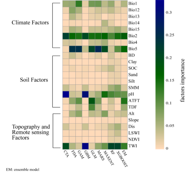 圖2 影響泥炭地潛在分布的因素重要性