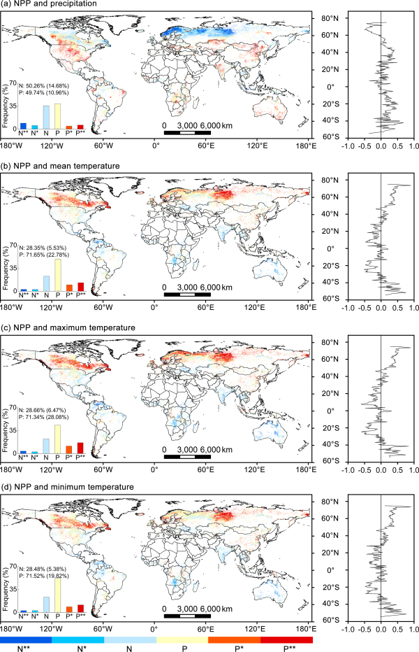圖2 全球沼澤濕地植被凈初級生產(chǎn)力與氣候因子的相關(guān)性