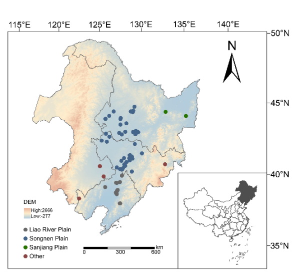 東北黑土區(qū)是全球典型的黑土分布區(qū)之一,也是我國最重要的糧食生產(chǎn)基地。該區(qū)域生產(chǎn)了全國約36%的玉米和50%的大豆,是國家糧食安全的核心保障。然而,長期高強(qiáng)度利用與氣候變化疊加,導(dǎo)致黑土地土壤有機(jī)質(zhì)下降、結(jié)構(gòu)退化等問題日益突出。與此同時(shí),不同地區(qū)在氣候、土壤質(zhì)地和地形條件上存在明顯差異,使得相同的耕作或施肥措施在區(qū)域間表現(xiàn)差異顯著。這種異質(zhì)性不僅增加了農(nóng)業(yè)管理的不確定性,也制約了管理模式的推廣和應(yīng)用。在此背景下,明確不同土壤管理措施在東北地區(qū)的綜合效應(yīng)及其驅(qū)動機(jī)制,對于構(gòu)建區(qū)域適宜的農(nóng)業(yè)管理體系、提升作物產(chǎn)量和土壤質(zhì)量、實(shí)現(xiàn)農(nóng)業(yè)可持續(xù)發(fā)展具有重要意義。