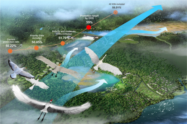 研究進一步表明,將小/孤濕地納入保護體系后,遷徙鳥類停歇地間距可由平均20.9公里縮短至3.2公里,顯著增強生態(tài)連通性。這不僅有助于提升生物多樣性保護和生態(tài)系統(tǒng)韌性,也與《昆明—蒙特利爾全球生物多樣性框架》提出的“30×30”目標高度契合,即到2030年有效保護30%的陸地和內(nèi)陸水域。作為首個針對中國小/孤濕地的系統(tǒng)盤點,該研究提出了一套可推廣的數(shù)據(jù)驅(qū)動框架,為全球快速濕地評估提供了新思路。通過認清這些“小而關鍵”濕地的保護價值,并通過制定優(yōu)先、中等和一般的分類保護建議,填補全國尺度濕地保護空缺,提升中國濕地生態(tài)系統(tǒng)系統(tǒng)和全面保護繼續(xù)走在世界前列。