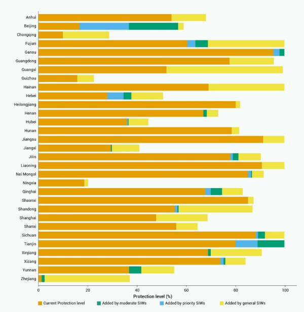 圖4 小/孤濕地納入保護后的各省保護率提升情況