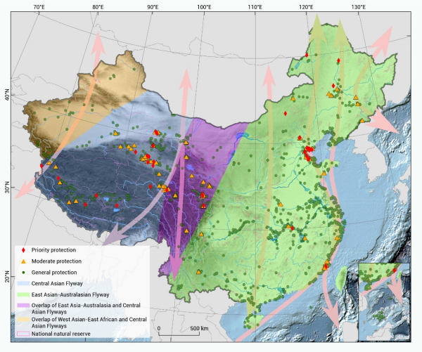 圖5 主要遷飛通道和小/孤濕地